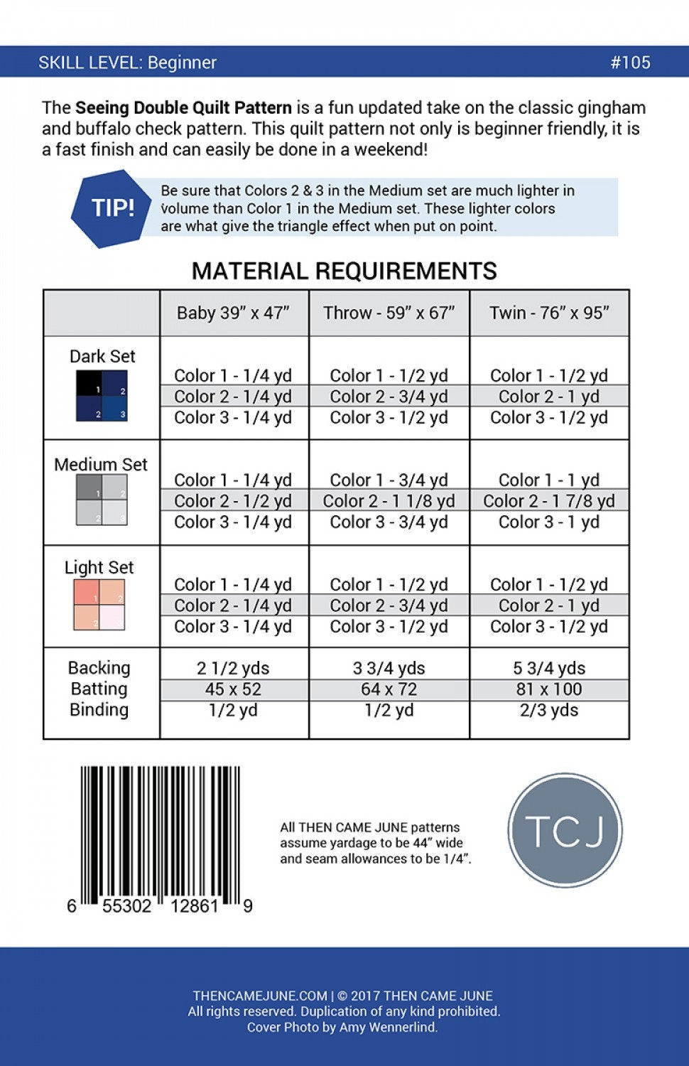 Seeing Double Quilt Printed Pattern Only By Then Came June TCJ105 Three Sizes included Baby, Throw and Twin is backordered and will ship as soon as it is back in stock.