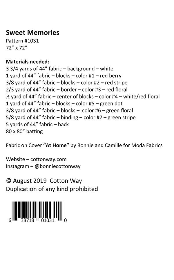 Sweet Memories Quilt Pattern, Cotton Way CW1031