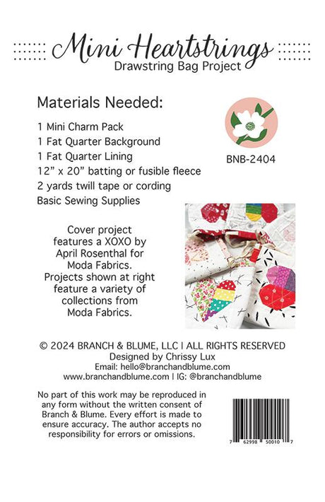 Mini Heartstrings Drawstring Bag Pattern BNB 2404 by Chrissy Lux for Sew Lux Fabric 6"x 6" x 2"