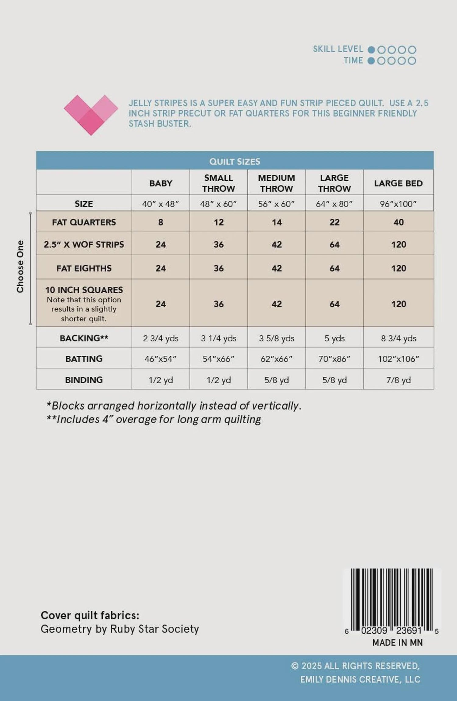 Jelly Stripes Quilt Pattern by Quilty Love QLP159 Sizes Crib and Throw 5 sizes is backordered and will ship as soon as it is back in stock.