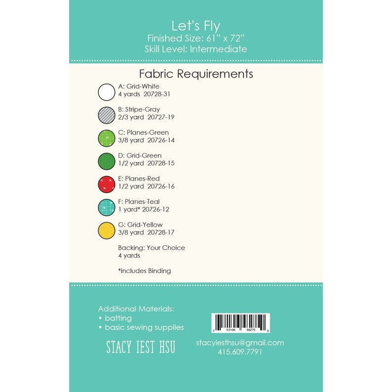 Let's Fly Quilt Pattern by Stacy Iest Hsu 61" x 72" is backordered and will ship as soon as it is back in stock.