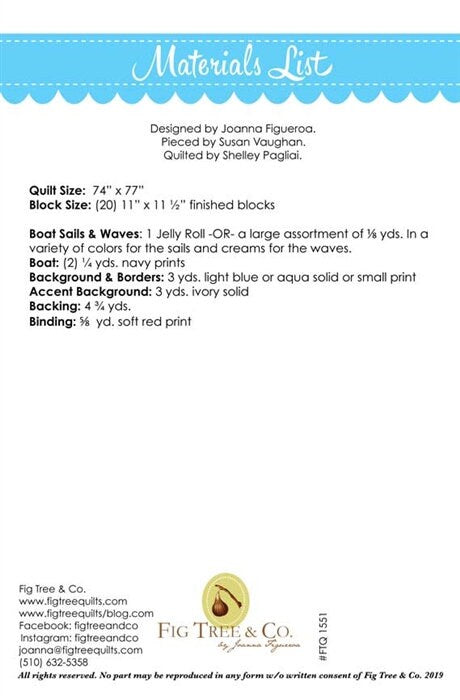 Regatta quilt Printed Pattern Only by Fig Tree Quilts 74 x 77 inches is backordered and will ship as soon as it is back in stock.