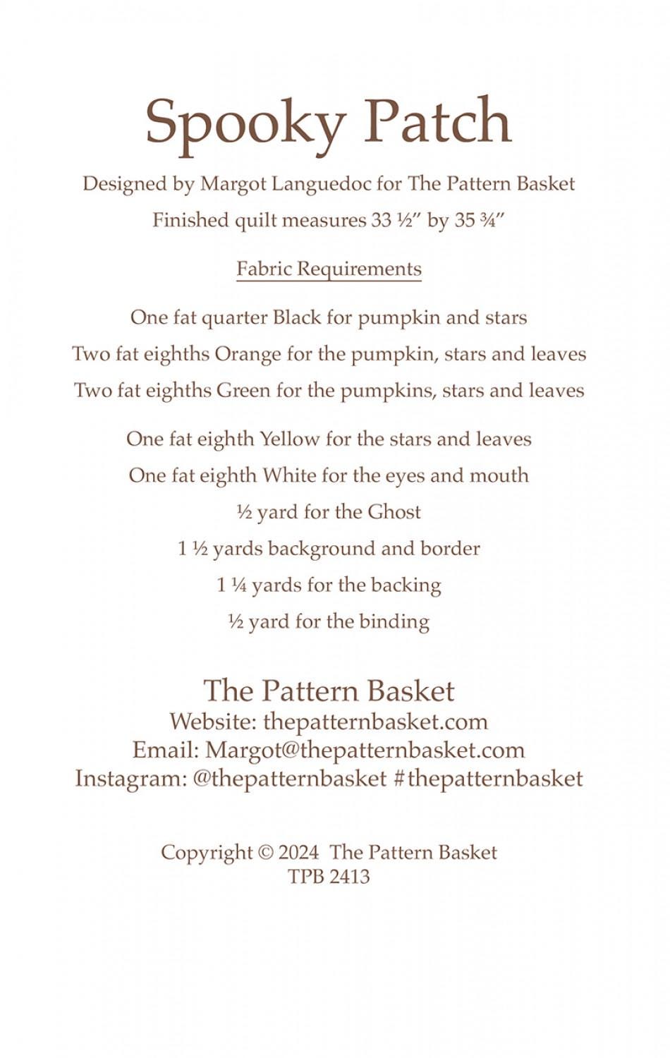 Spooky Patch by The Pattern Basket, Margot Designs TPB2413 Paper Pattern ONLY